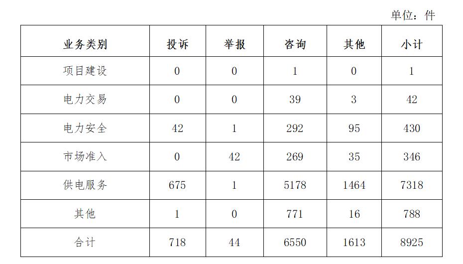 2023年1月共收到投訴舉報(bào)事項(xiàng)781件,根據(jù)國家有關(guān)法律法規(guī)規(guī)定,國家能源局派出機(jī)構(gòu)對(duì)屬于監(jiān)管職責(zé)范圍的696件進(jìn)行了受理,占投訴舉報(bào)量的89.11%;其他根據(jù)相關(guān)規(guī)定不予受理的,已按照有關(guān)規(guī)定進(jìn)行了及時(shí)轉(zhuǎn)辦,并將相關(guān)情況及時(shí)告知了當(dāng)事人。