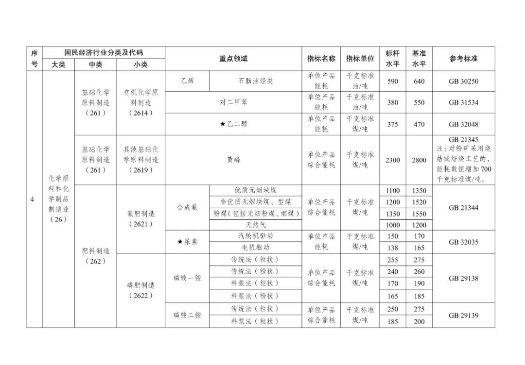 結合工業(yè)重點領域產品能耗、規(guī)模體量、技術現狀和改造潛力等,進一步拓展能效約束領域。在此前明確煉油、煤制焦炭、煤制甲醇、煤制烯烴、煤制乙二醇、燒堿、純堿、電石、乙烯、對二甲苯、黃磷、合成氨、磷酸一銨、磷酸二銨、水泥熟料、平板玻璃、建筑陶瓷、衛(wèi)生陶瓷、煉鐵、煉鋼、鐵合金冶煉、銅冶煉、鉛冶煉、鋅冶煉、電解鋁等25個重點領域能效標桿水平和基準水平的基礎上,增加乙二醇,尿素,鈦白粉,聚氯乙烯,精對苯二甲酸,子午線輪胎,工業(yè)硅,衛(wèi)生紙原紙、紙巾原紙,棉、化纖及混紡機織物,針織物、紗線,粘膠短纖維等11個領域,進一步擴大工業(yè)重點領域節(jié)能降碳改造升級范圍。