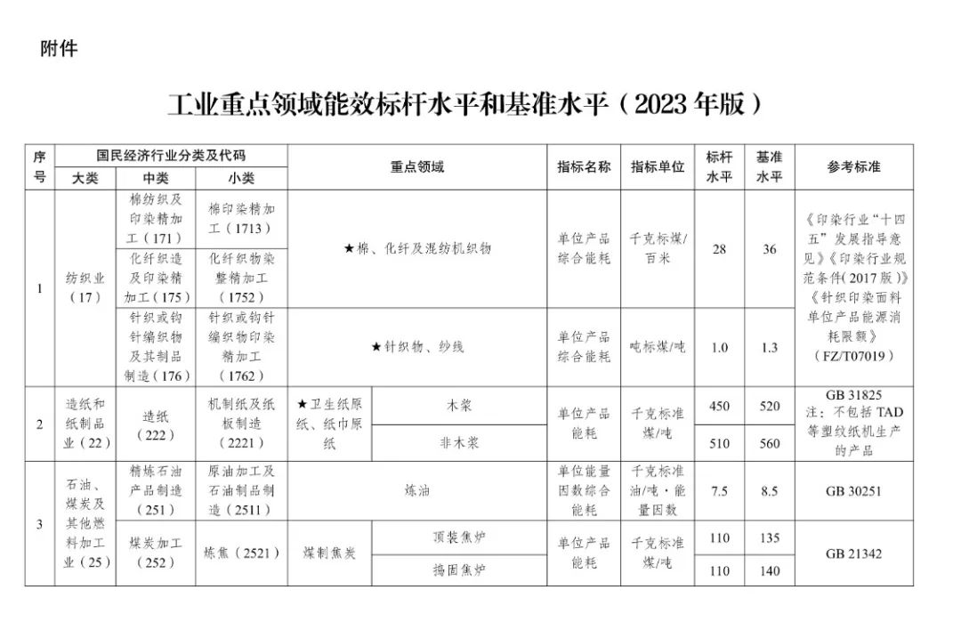 7月4日,國家發(fā)改委等部門發(fā)布關于《工業(yè)重點領域能效標桿水平和基準水平(2023年版)》的通知。
