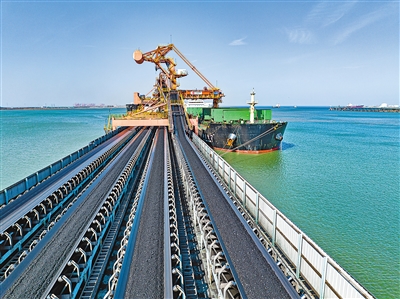 出港 河北省滄州市 在黃驊港,皮帶機(jī)將煤炭傳送到貨船上。