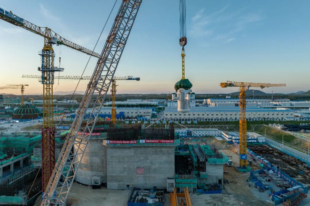 8月10日,現(xiàn)場一聲令下,中核集團旗下中國核電投資控股中核海南多用途模塊式小型堆科技示范工程玲龍一號反應堆核心模塊被高高吊起,向著核島方向移動。吊裝成功!壓力容器、蒸發(fā)器等關鍵設備一步到位,玲龍一號全球首堆的安裝工作步入高峰期。