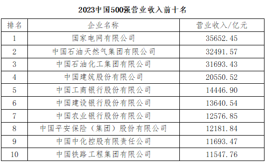 千億級(jí)企業(yè)首次超過50%,2023中國企業(yè)500強(qiáng)營業(yè)收入超過1000億元的企業(yè)數(shù)量增至254家,凈增10家。其中有16家企業(yè)營業(yè)收入超過1萬億元,國家電網(wǎng)、中國石油、中國石化營業(yè)收入超過3萬億元,中國建筑的營業(yè)收入超過了2萬億元。