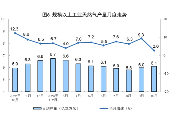 天然氣生產保持平穩(wěn),進口增速加快。10月份,生產天然氣190億立方米,同比增長2.6%,增速比9月份回落6.7個百分點,日均產量6.1億立方米。進口天然氣879萬噸,同比增長15.5%,增速比9月份加快15.1個百分點。