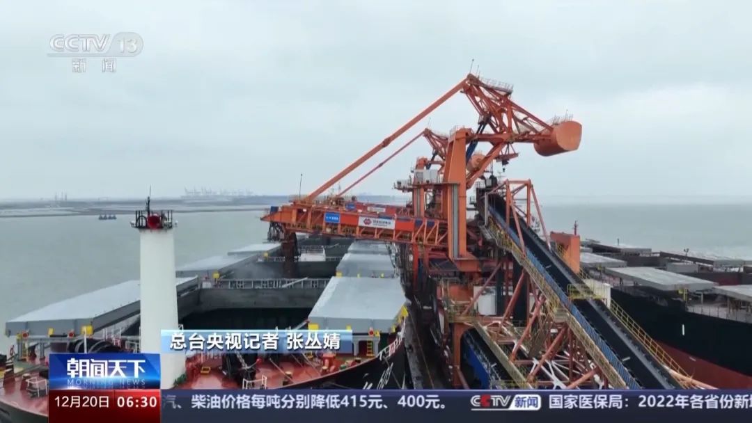 總臺央視記者 張叢婧:總臺央視記者 張叢婧:卸完的煤就是通過皮帶運到這個兩公里外的碼頭,它們的目的地是江蘇、浙江等地的電廠。工作人員告訴我,現(xiàn)在港口上的17個泊位已經(jīng)是全部都停滿了貨船在進行裝煤,整個港已經(jīng)是處于滿負荷的運轉狀態(tài)。