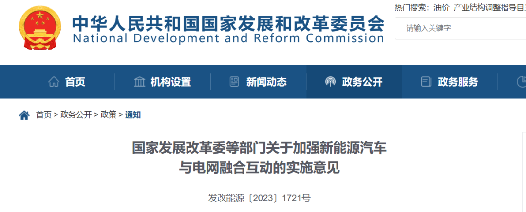 國家發(fā)展改革委等部門關(guān)于加強(qiáng)新能源汽車與電網(wǎng)融合互動的實(shí)施意見