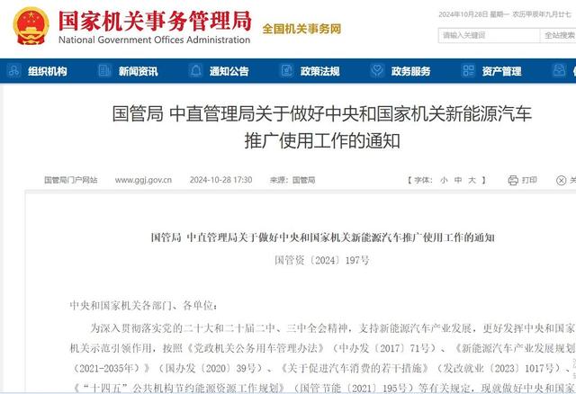 10月28日,據(jù)國家機(jī)關(guān)事務(wù)管理局網(wǎng)站消息,國管局、中直管理局日前聯(lián)合印發(fā)《關(guān)于做好中央和國家機(jī)關(guān)新能源汽車推廣使用工作的通知》,旨在支持新能源汽車產(chǎn)業(yè)發(fā)展,更好發(fā)揮中央和國家機(jī)關(guān)示范引領(lǐng)作用。