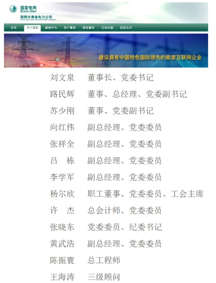 國網(wǎng)甘肅省電力公司原董事、黨委副書記王海濤轉(zhuǎn)為三級顧問,蘇少剛接任國網(wǎng)甘肅省電力公司董事、黨委副書記。