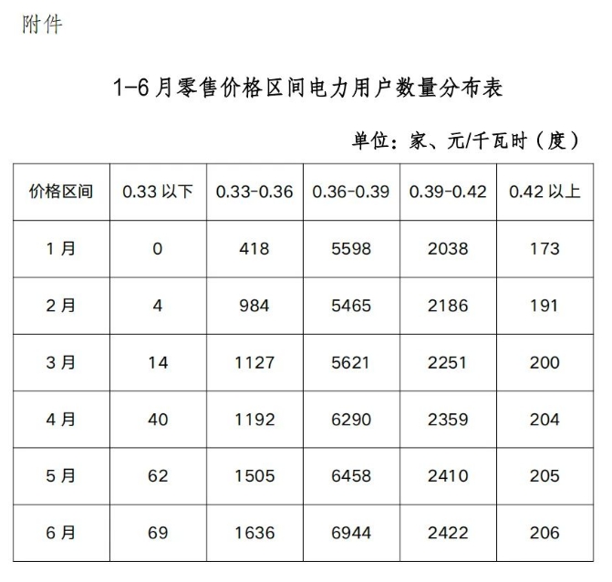 附件:1-6月零售價格區(qū)間電力用戶數(shù)量分布表