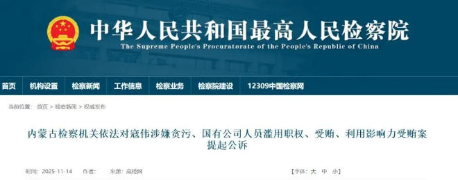 中國(guó)大唐集團(tuán)有限公司原黨組副書記、總經(jīng)理寇偉涉嫌貪污、國(guó)有公司人員濫用職權(quán)、受賄、利用影響力受賄一案,由國(guó)家監(jiān)察委員會(huì)調(diào)查終結(jié),移送檢察機(jī)關(guān)審查起訴。最高人民檢察院依法以涉嫌貪污罪、國(guó)有公司人員濫用職權(quán)罪、受賄罪、利用影響力受賄罪對(duì)寇偉作出逮捕決定,并指定由內(nèi)蒙古自治區(qū)人民檢察院興安盟分院審查起訴。近日,內(nèi)蒙古自治區(qū)人民檢察院興安盟分院已向內(nèi)蒙古自治區(qū)興安盟中級(jí)人民法院提起公訴。