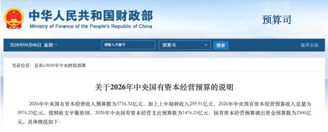 《2026預算說明》表示,2026年中央國有資本經(jīng)營收入預算數(shù)為3716.32億元,比上年執(zhí)行數(shù)(下同)減少186.42億元,下降4.8%。 利潤收入3522.33億元,減少228.44億元,下降6.1%。其中,國有全資企業(yè)(非金融)稅后利潤的收取比例主要分為四類執(zhí)行:第一類為煙草企業(yè)和石油石化、電力、電信、煤炭等資源型企業(yè),收取比例35%,2026年上交收入2700.6億元,下降5.4%;第二類為有色及黑色冶金采掘、運輸、電子、貿(mào)易、施工等一般競爭型企業(yè),收取比例30%,2026年上交收入633.17億元,下降7.8%;第三類為軍工企業(yè)、轉(zhuǎn)制科研院所、中國郵政集團有限公司、中國國家鐵路集團有限公司、北大荒農(nóng)墾集團有限公司、中央文化企業(yè)、中央部門所屬企業(yè),收取比例20%,2026年上交收入178.56億元,下降9.8%;第四類為政策性企業(yè),免交國有資本收益。符合小型微型企業(yè)規(guī)定標準的國有獨資企業(yè),應交利潤不足10萬元的,比照執(zhí)行免交政策。此外,金融企業(yè)利潤收入10億元。