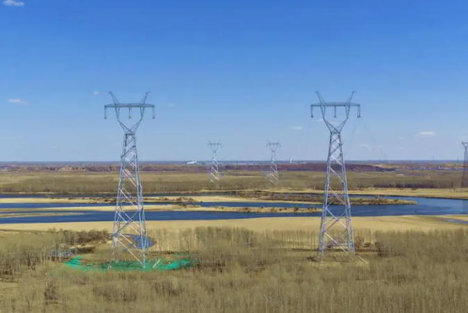 ▲內(nèi)蒙古首條“沙戈荒”新能源基地外送通道——±800千伏蒙西—京津冀特高壓直流輸電工程(河北段)