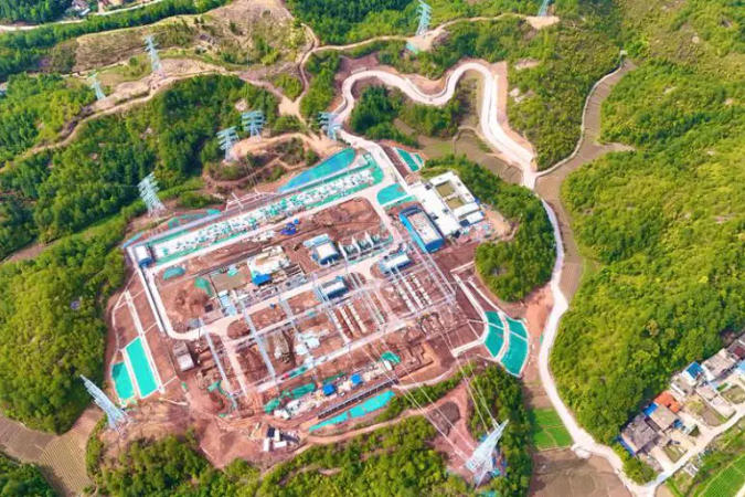 ▲閩贛背靠背聯(lián)網(wǎng)工程在福建的重要電源點(diǎn)——福建汀州500千伏變電站施工現(xiàn)場