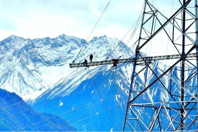 ▲國網(wǎng)冀北電力員工在阿壩—成都東1000千伏特高壓交流工程現(xiàn)場施工