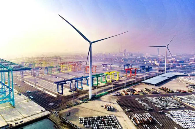 ▲天津港北疆港區(qū)C段智能化集裝箱碼頭的“風(fēng)光儲荷一體化”綠色能源系統(tǒng)