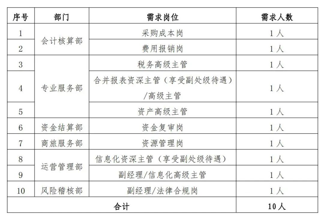 除上述基本條件、資格要求外,應聘人員還應符合《財務共享中心2022年社會招聘崗位需求表》(附件)中的資格要求。