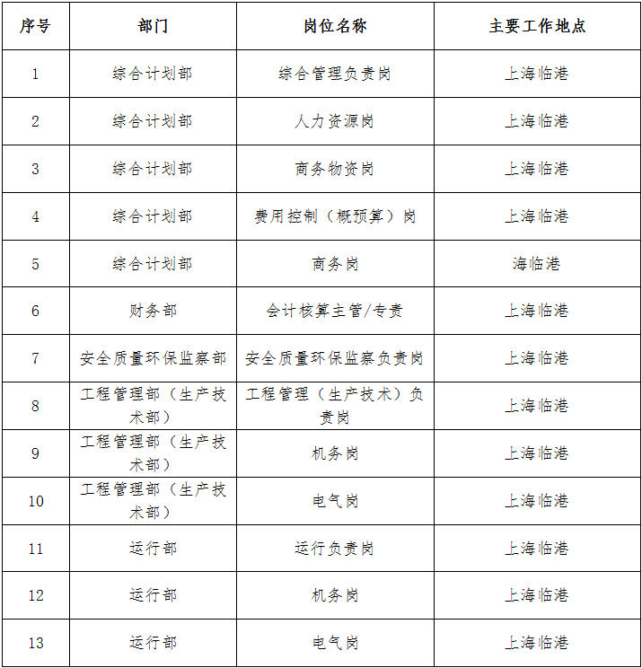 根據(jù)上海公司發(fā)展需要,現(xiàn)面向國家電投系統(tǒng)內(nèi)外公開招聘綜合管理、人力資源、安全質(zhì)量環(huán)保、機(jī)務(wù)、電氣等崗位,具體事項(xiàng)公告如下: