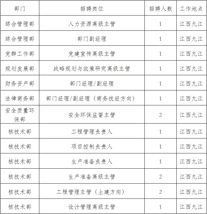 面向社會公開招聘。國家電投集團系統(tǒng)內(nèi)員工優(yōu)先。
