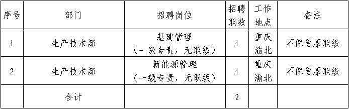 根據(jù)工作需要現(xiàn)面向集團(tuán)公司系統(tǒng)公開招聘重慶公司本部一般管理人員,具體招聘事宜公告如下: