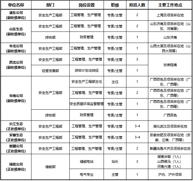 詳見《上海電力所屬單位招聘崗位及任職條件》(附件1)。