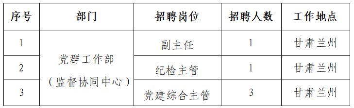 自成立以來(lái),甘肅公司高度重視人才培養(yǎng)工作,為員工搭建了廣闊的發(fā)展平臺(tái),著力于公司和員工共同成長(zhǎng),現(xiàn)根據(jù)公司發(fā)展需要,面向社會(huì)公開(kāi)招聘部分崗位工作人員,具體事項(xiàng)公告如下: