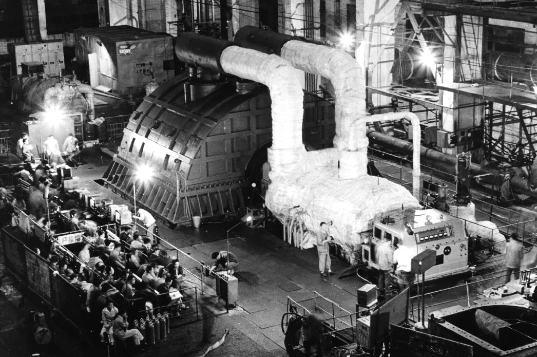 上個(gè)世紀(jì)八十年代,東方電氣集團(tuán)自主研制的第一代東方“爭(zhēng)氣機(jī)”——30萬(wàn)千瓦汽輪機(jī)在廠(chǎng)內(nèi)一次試車(chē)成功。