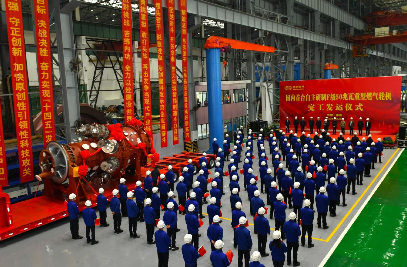 2022年11月25日,東方電氣集團(tuán)研制的國(guó)內(nèi)首臺(tái)完全自主知識(shí)產(chǎn)權(quán)的F級(jí)50兆瓦重型燃?xì)廨啓C(jī)發(fā)運(yùn)。該產(chǎn)品被譽(yù)為中國(guó)“爭(zhēng)氣機(jī)”,填補(bǔ)了我國(guó)自主燃?xì)廨啓C(jī)應(yīng)用領(lǐng)域空白,解決了多項(xiàng)“卡脖子”關(guān)鍵核心技術(shù)難題,為清潔能源領(lǐng)域提供自主可控全鏈條式的“中國(guó)方案”。該燃機(jī)現(xiàn)已成功投運(yùn)并成功通過(guò)2000小時(shí)滿(mǎn)負(fù)荷商業(yè)運(yùn)行。