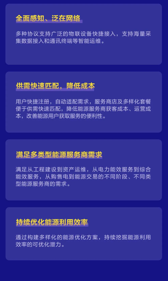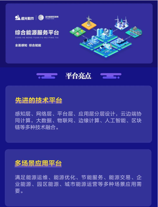 遠(yuǎn)光綜合能源服務(wù)平臺(tái)是以物聯(lián)網(wǎng)為載體,以大數(shù)據(jù)、人工智能等技術(shù)為基礎(chǔ),提供綜合能源供應(yīng)、銷(xiāo)售、消費(fèi)服務(wù)的綜合服務(wù)云平臺(tái)。平臺(tái)以能源用戶(hù)為中心,提供信息采集、能效分析、節(jié)能服務(wù)、需求響應(yīng)、能源托管、能源交易等服務(wù),為綜合能源服務(wù)商的客戶(hù)服務(wù)、業(yè)務(wù)創(chuàng)新、商業(yè)模式創(chuàng)新等提供支持。平臺(tái)可支撐企業(yè)綜合能源、園區(qū)綜合能源、智慧城市綜合能源運(yùn)營(yíng)。