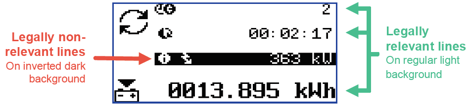 如圖5示例,紅色箭頭指示的字段,即黑底白字部分,顯示如連接線狀態(tài)、電表IP地址、本地日期,本地時(shí)間等內(nèi)容,這些信息不受法規(guī)管控。用戶可以通過(guò)上位機(jī)設(shè)定電表,或者由電表顯示自身的工作狀態(tài)。