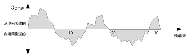 ▲注:月度總無功量=實時關(guān)口表計量值的絕對值累計求和 ( 為圖中陰影部分面積 )