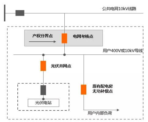 分布式光伏電站就近接入用戶內(nèi)部電網(wǎng),運行方式以自發(fā)自用、余電上網(wǎng)為主,光伏系統(tǒng)并網(wǎng)點在產(chǎn)權(quán)分界點以下,而現(xiàn)有的電價政策是按照產(chǎn)權(quán)分界點的功率因數(shù)考核無功,并且計算功率因數(shù)時,用戶向電網(wǎng)倒送的有功按0計算。