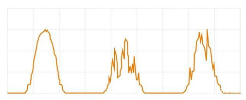 圖3為日本某光伏電站三天的實(shí)際發(fā)電曲線。該電站采用7倍容配比設(shè)計(jì),通過直流側(cè)加裝儲能系統(tǒng),實(shí)現(xiàn)光儲電站24小時(shí)發(fā)電,徹底解決了棄光和輸出功率波動的問題。