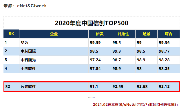 2020年度中國信創(chuàng)TOP500完整名單: