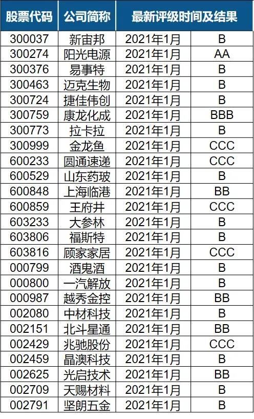 表:新增A股ESG評級結(jié)果