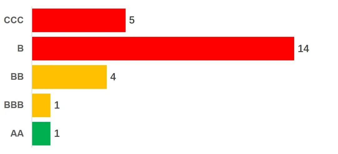 - 在評級保持不變的7家公司中,有4家仍然處于行業(yè)落后位置(3家B級、1家CCC級),有3家處于行業(yè)平均位置(2家BBB級、1家BB級)。