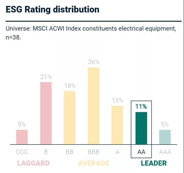 - 有4家公司在“清潔技術(shù)機遇(Opportunities in Clean Tech)”方面處于同行業(yè)領(lǐng)先位置(值得注意的是,其中3家公司的ESG評級為B級,但仍在 “清潔技術(shù)機遇”方面領(lǐng)先于同業(yè));