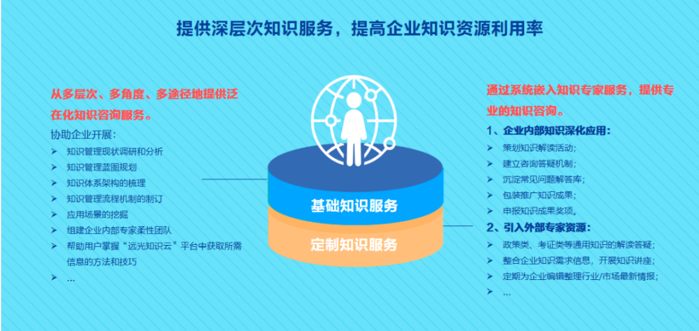 基礎(chǔ)知識服務(wù),如企業(yè)現(xiàn)狀調(diào)研分析、知識管理藍圖規(guī)劃、體系架構(gòu)梳理等。