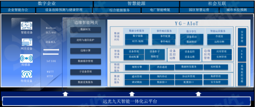 遠(yuǎn)光智能物聯(lián)平臺(tái)(YG-AIoT)是遠(yuǎn)光軟件基于“云、邊、端”一體化協(xié)同理念,創(chuàng)新推出的新一代智能物聯(lián)平臺(tái),能為設(shè)備廠商、方案服務(wù)商、應(yīng)用開(kāi)發(fā)商提供設(shè)備智能化、連接智能化、數(shù)據(jù)智能化、運(yùn)維智能化的服務(wù)能力,滿足各類物聯(lián)網(wǎng)場(chǎng)景應(yīng)用需求,可有效支撐低碳智慧園區(qū)建設(shè),實(shí)現(xiàn)園區(qū)設(shè)施智慧管理。