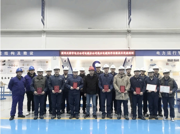 其中,2023年組織國網(wǎng)客戶(包括國網(wǎng)天津市電力公司電纜分公司、國網(wǎng)石家莊供電公司、國網(wǎng)濟(jì)南供電公司、國網(wǎng)南昌供電公司、國網(wǎng)保定供電公司、國網(wǎng)鄭州供電公司電纜運(yùn)檢中心、國網(wǎng)長沙供電公司電纜檢修公司、國網(wǎng)四川省電力公司成都供電公司等)來司開展高壓電纜附件安裝培訓(xùn)共計9場,參訓(xùn)學(xué)員48人,累計培訓(xùn)學(xué)時584小時;受國網(wǎng)客戶單位邀請開展各類技能比武、安裝技能提升培訓(xùn)指導(dǎo)服務(wù)共計12次,累計培訓(xùn)、指導(dǎo)課時418小時。2024年2月底到3月初,為國網(wǎng)天津市電力公司電纜分公司的15名青年職工提供為期5天的專業(yè)培訓(xùn)。