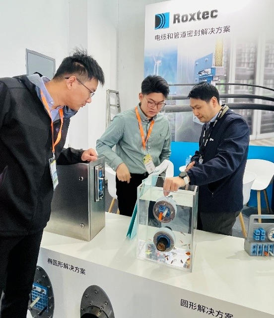 大批風(fēng)電設(shè)備制造商、開發(fā)商及技術(shù)專家蒞臨參觀。國內(nèi)某風(fēng)電整機(jī)廠技術(shù)專家表示:“以往項(xiàng)目中,不同規(guī)格管線要匹配不同密封件,選型、庫存管理都很繁瑣,Roxtec多徑技術(shù)直接解決了這個痛點(diǎn),對提升安裝效率很有幫助。”