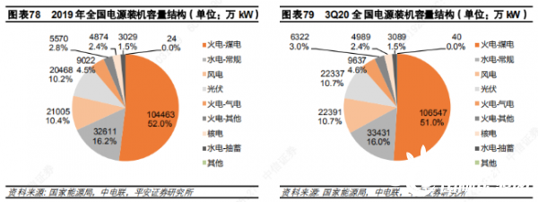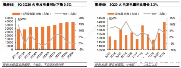 2019/2020 年冬季(2019 年 12 月及 2020 年1月、2月),全國(guó)平均氣溫較常年同期偏高1.1℃,是 1961年以來(lái)歷史同期第五高。暖冬疊加疫情,雖然有春節(jié)淡季因素存在,發(fā)、用電量仍下降超過(guò)5%,Q1火電發(fā)電量下降 8.2%,全行業(yè)上市公司營(yíng)收下降 9.9%。隨著新冠疫情迅速得到有效控制,全社會(huì)用電需求顯著回暖,同時(shí)上半年水電出力不足,火電發(fā)電量在 Q2同比增長(zhǎng) 6.5%。但 Q3水電大發(fā),火電同比增速回落至 3.3%。