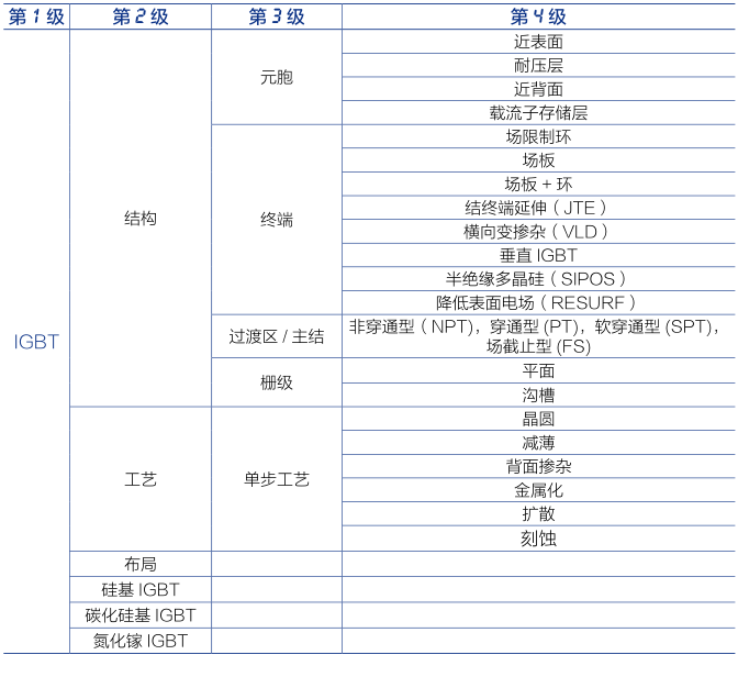 2.報(bào)告給出了IGBT的技術(shù)分類表,如下(部分):