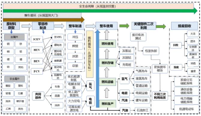 在這種評(píng)估思路下,汽車原材料的獲取、制造裝配、運(yùn)行使用、關(guān)鍵部件二次利用直至報(bào)廢回收過(guò)程中所產(chǎn)生的碳排放都應(yīng)該考慮在內(nèi)。