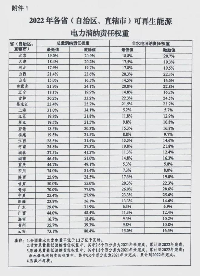日前,國家發(fā)改委和國家能源局又聯(lián)合發(fā)布《關(guān)于2022年可再生能源電力消納責(zé)任權(quán)重及有關(guān)事項(xiàng)的通知》,明確各省2022年可再生能源電力消納責(zé)任權(quán)重以及2023年再生能源電力消納責(zé)任權(quán)重預(yù)期目標(biāo)。