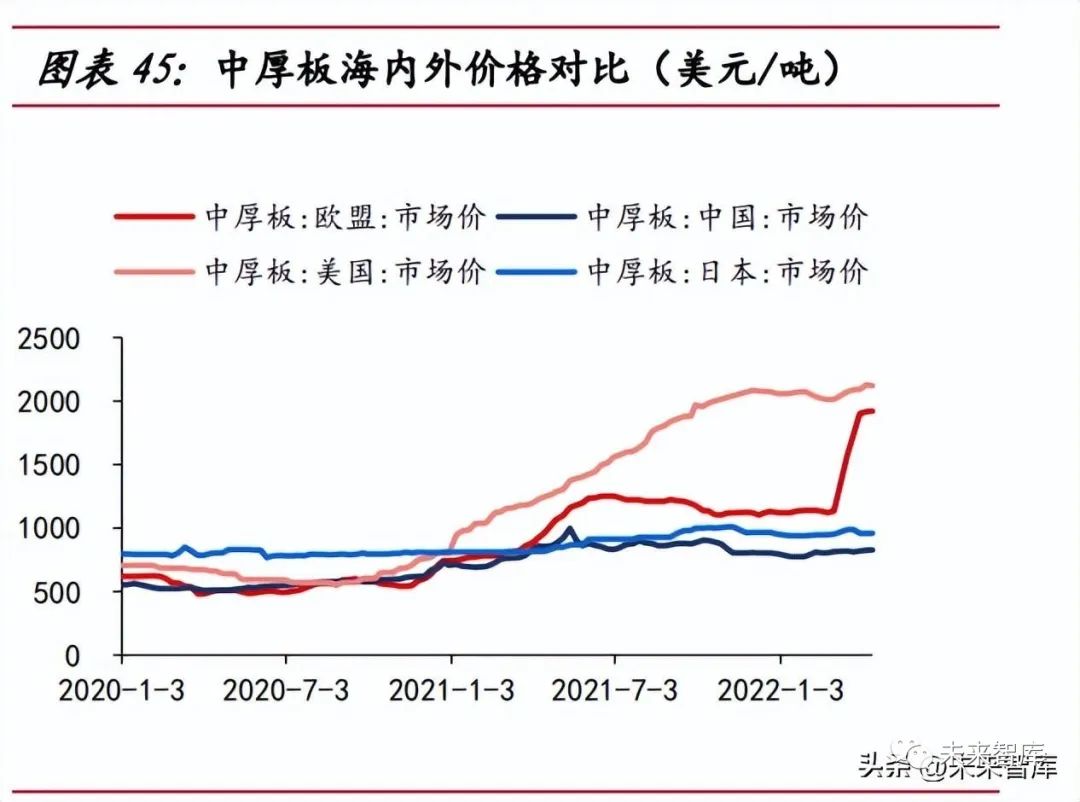 樁基無反傾銷稅限制,歐洲企業(yè)競爭力有限?,F(xiàn)階段樁基無反傾銷稅限制,參考 塔筒反傾銷稅的調(diào)查周期(約 10 年),未來 10 年有望成為樁基環(huán)節(jié)的出口黃金期。競爭對手方面,歐洲本土供應(yīng)商的產(chǎn)能落后,歐洲本土樁基供應(yīng)商產(chǎn)能有限,SIF、 EEW等四家主流供應(yīng)商的年設(shè)計產(chǎn)能之和不足 600 根,且50%的產(chǎn)品直徑小于11米, 在歐洲風(fēng)機大型化趨勢下,已難滿足大噸重以及大直徑的產(chǎn)品要求。塔筒出口受反傾銷稅影響。較低的反傾銷稅率能使國內(nèi)塔筒企業(yè)在海外市場中擁 有更強的議價能力?,F(xiàn)階段,大金重工在歐盟地區(qū)的反傾銷稅最低為 7.2%,泰勝風(fēng)能 在澳洲地區(qū)的反傾銷稅為零,出口優(yōu)勢明顯。原材料價低造就競爭力。原材料價格方面,塔筒原材料主要有中厚板、法蘭等, 中厚板占原材料成本的占在 80%以上, 2022 年俄烏沖突,歐洲中厚板價格一度是我 國中厚板價格的兩倍,我國中厚板市場價長期低于國際市場,促使我國塔筒企業(yè)利潤 率高于海外企業(yè)。