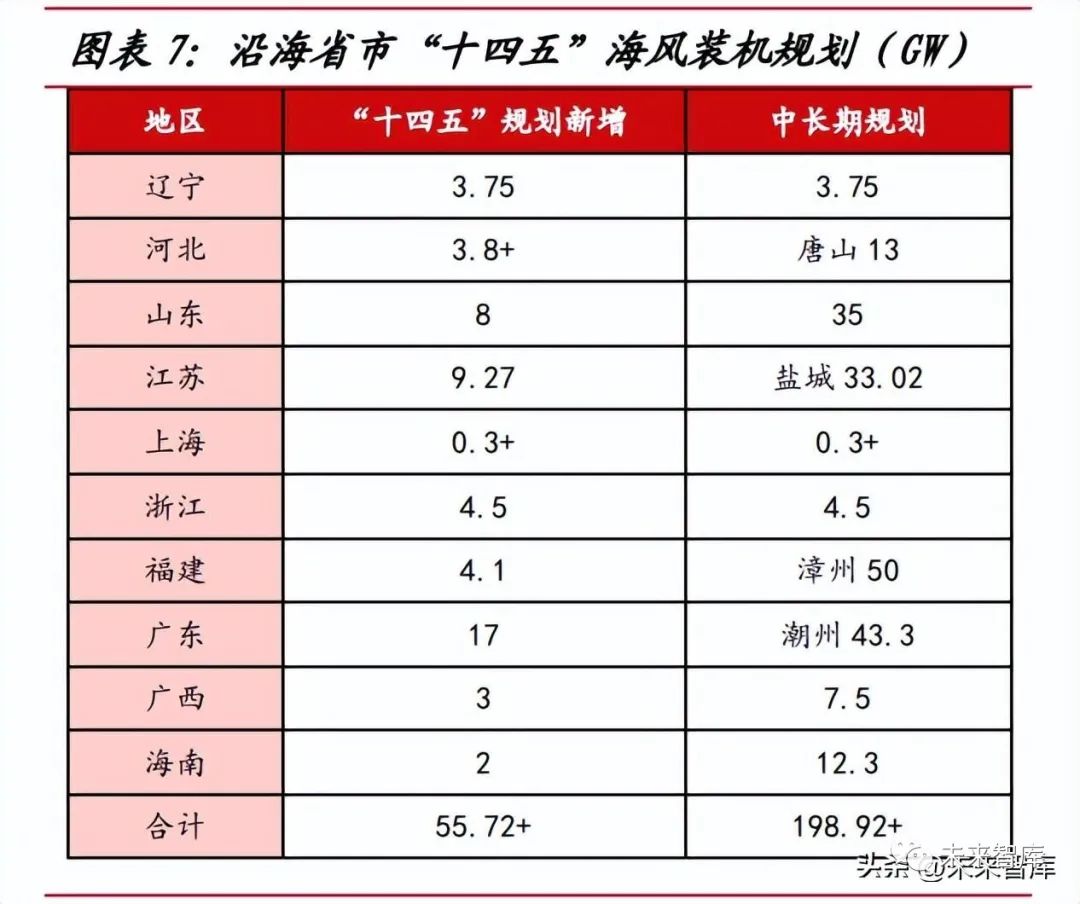 “十四五”規(guī)劃充沛,中長期發(fā)展可期。截至 2022 年,我國沿海省市已發(fā) 布“十四五”海上風(fēng)電發(fā)展規(guī)劃,整體規(guī)劃新增裝機規(guī)模有望突破 55GW,2021- 22 年我國海風(fēng)新增裝機約 21GW,對應(yīng) 2023-25 年裝機規(guī)模約 34GW??紤]到部 分地區(qū)相關(guān)海風(fēng)項目已實現(xiàn)平價上網(wǎng),海風(fēng)降本超預(yù)期,再結(jié)合廣東、山東、浙江 等地區(qū)已出臺地補政策支持海風(fēng)建設(shè),我們預(yù)計海風(fēng)需求以及新增裝機或超過沿海 地區(qū)規(guī)劃規(guī)模,中性假設(shè)條件下,2023-25 年我國海風(fēng)新增裝機規(guī)模有望超 40GW, 2023 年在行業(yè)充沛的招標量下,新增裝機規(guī)模有望達 10GW,同比實現(xiàn)翻倍增長。根據(jù)風(fēng)芒能源統(tǒng)計,我國已出臺的海上風(fēng)電規(guī)劃體量接近 200GW,中長期發(fā)展空 間廣闊。