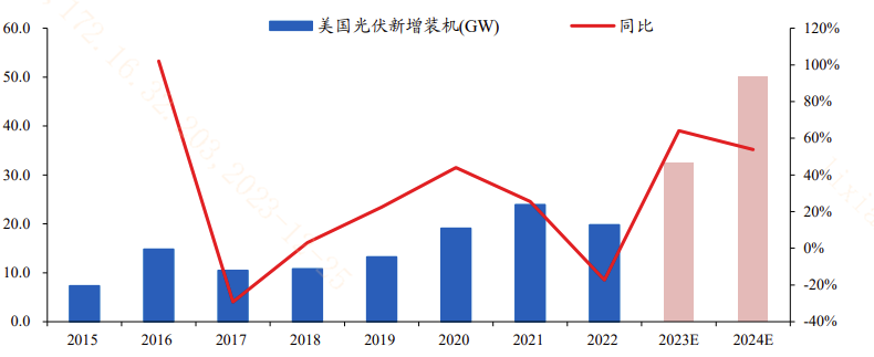 圖:2024年美國光伏裝機可達(dá)45-55GW,同比增長38%-69% (信息來源:華創(chuàng)證券)