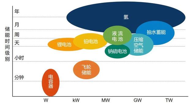 儲能技術按時間尺度可分為超短時(秒級到分鐘級)、短時(小時級到數(shù)小時級)儲能和長期(日、周、月、年)儲能。目前,我們已經(jīng)開發(fā)出了多種類型的儲能技術,如電容器、飛輪儲能、電化學儲能(鋰電池、鉛電池、鈉硫電池、液流電池)、壓縮空氣儲能、抽水蓄能、氫儲能等。這些技術各有優(yōu)缺點,可根據(jù)不同的應用場景選擇合適的儲能技術。