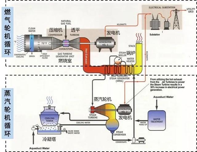 燃氣機“一拖一”聯(lián)合循環(huán)發(fā)電機組發(fā)電原理圖