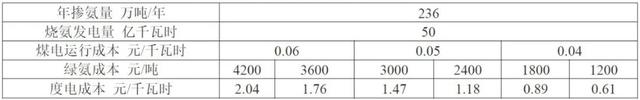 煤電燒氨經(jīng)濟性評估(年利用小時數(shù)3000小時)