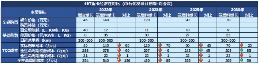 在最近的電動汽車百人會上,中石化的劉會友,展示了一張氫能重卡的經(jīng)濟(jì)性測算表。香橙會也有類似的測算,結(jié)果大差不差。結(jié)論都是,目前氫燃料重卡,處在一個微妙的盈虧平衡點(diǎn)上。從5年全生命周期的角度,已經(jīng)跟燃油重卡打平。但是,從終端使用者的角度,目前還沒有感受到。這個時候,需要政策往前推一把。